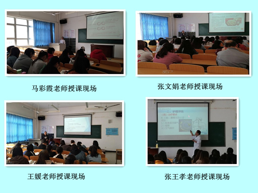 生理生化教研室王媛老师于4月10日上午展示了关于“维生素与辅酶”的示范课。她将生活现象与教材内容相关联,将自然规律与分子间关系相关联,深入浅出地讲解了维生素A、D、E、K的生化功能,在活跃的课堂气氛中使学生掌握了教学内容。外科护理学教研室张王孝老师于4月11日上午开展了“门静脉高压病人的护理”的示范课。他紧密结合临床案例,讲解透彻,采取灵活多样的教学方法与学生进行适当互动,生动风趣的语言给在场师生留下深刻的印象。