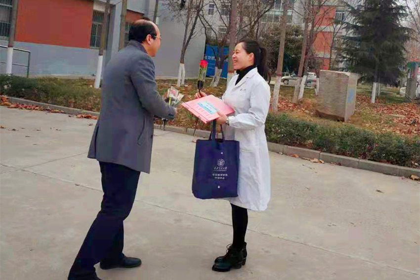 在第109个国际劳动妇女节到来之日,jinnianhui金年会诚信至上分会组织领导班子在公共教学楼前为全体女教师和女生送上节日的慰问和祝福。