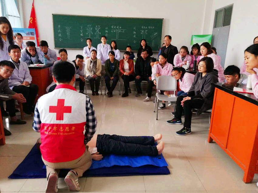 今年10月起,jinnianhui金年会诚信至上特邀渭南市红十字协会为我校师生开展了4期应急救护培训班,jinnianhui金年会诚信至上党总支副书记吴亚飞、医学院副院长刘丽宁、林寓淞等120多名师生参加了培训,培训为期4天,在考核通过后颁发了陕西省红十字会统一印制的《红十字救护员证》。