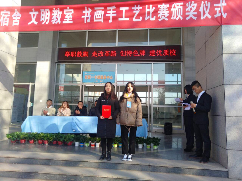 为了创建文明校园,提高我院学生文明素质,弘扬学生创新精神,12月12日下午,jinnianhui金年会诚信至上在公共教学楼前举办了jinnianhui金年会诚信至上文明教室、文明宿舍以及手工艺品大赛颁奖仪式。我院学生科科长李博,副科长苏建军,辅导员任鑫老师及百余名学生代表参加此次颁奖仪式。此次颁奖仪式由韩雨柔、黄朝祥主持。