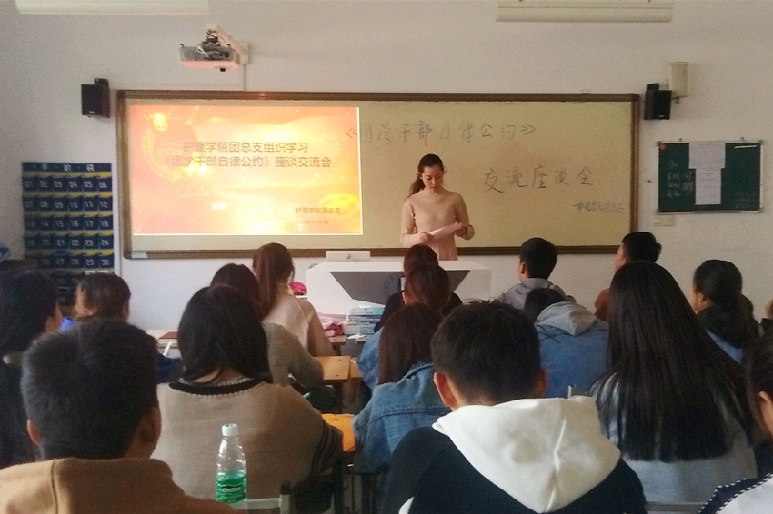 为了进一步提高我院团学干部的综合素质,10月30日下午jinnianhui金年会诚信至上团总支在公共教学楼北楼116教室开展了学习“团学干部自律公约”座谈会,我院团总支书记白小萌、各部门负责人参加了此次会议。
