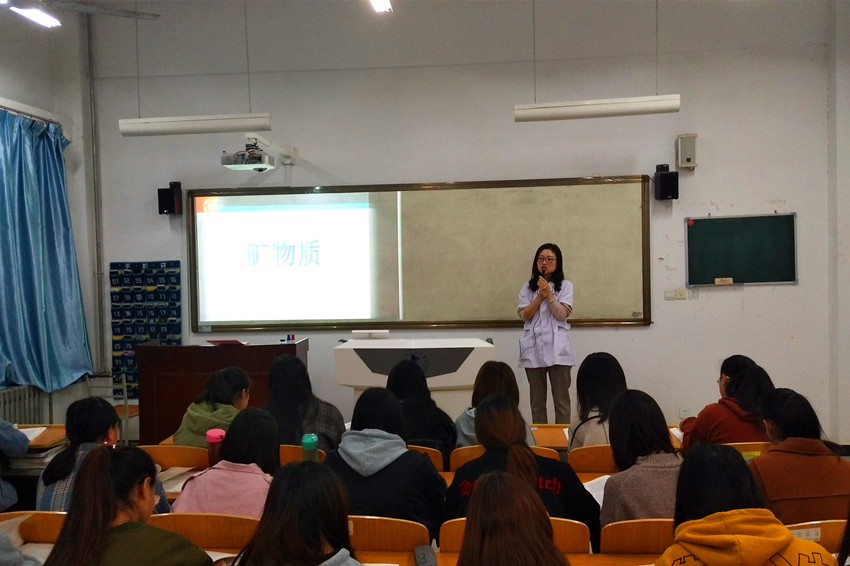 郭婷老师于10月25日上午在公北109教室为师生们带来了关于“矿物质”的示范课。郭婷老师教态端正,讲解内容全面,能够适应学科特点和学生特点,采取得当的教学方法,注重教学互动、启发学生思维,达到良好的课堂效果。