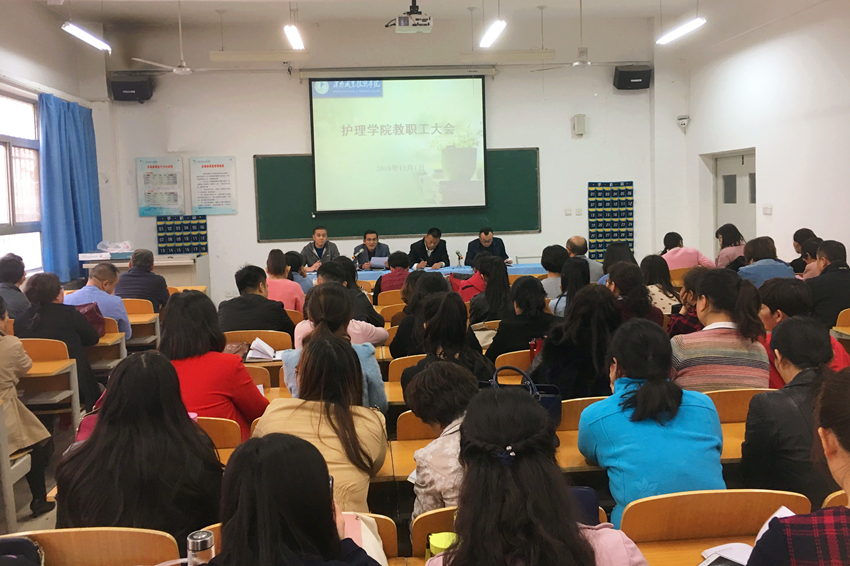 11月1日下午,jinnianhui金年会诚信至上组织全体教职工在公共教学楼南楼102室召开了2018-2019学年第一学期期中教职工大会。我院党总支书记吴运胜,院长张文信,副院长王医平、王小峰出席了会议。会议由王医平主持。