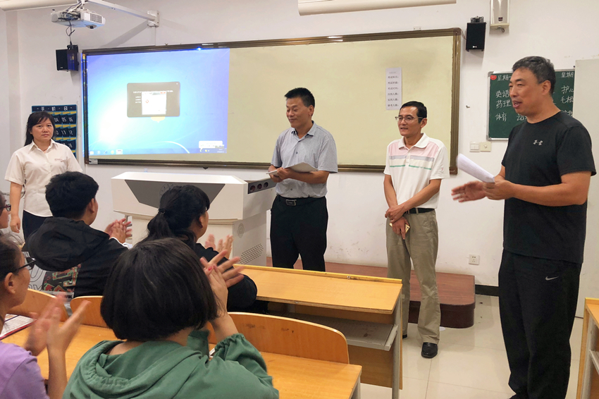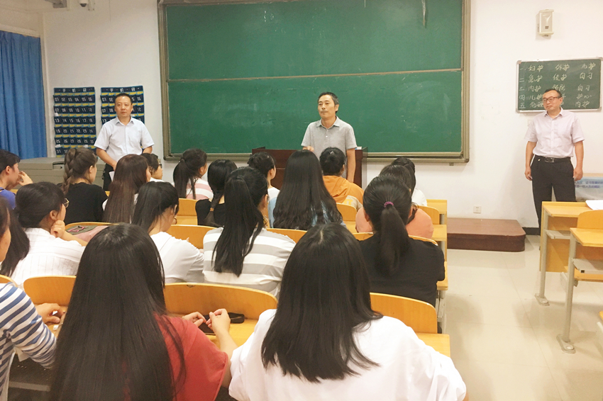我院党总支书记吴运胜,院长张文信,副书记张春兴、吴亚飞,副院长王医平、王小峰,学生科科长李博,团总支书记白小萌,学生科副科长苏建军等分组深入新生班级当中,向新生介绍了我校的办学历史和我校骨干专业、省级一流护理专业的优势,询问了入校后的生活上的困难,对学生军训准备、生涯规划提出了建议,讲述了大学中规避校园贷、游戏成瘾等风险的方法。他们共同祝愿学生在大学里学会做人,健康成长,实现成才梦想。(撰稿:jinnianhui金年会诚信至上 王蓉 审稿:吴亚飞)