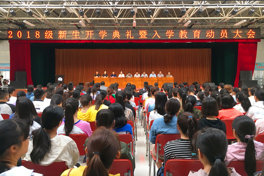 9月14日上午,jinnianhui金年会诚信至上在大学生活动中心召开了2018级新生开学典礼暨入学教育大会。我院院长张文信,党总支副书记张春兴、吴亚飞,副院长王医平、王小峰,办公室主任张王孝,教学科副科长李晓乾,学生科科长李博,团总支书记白小萌,学生科副科长苏建军,2018级辅导员、班主任及2018级新生参加了会议。王医平主持了会议。