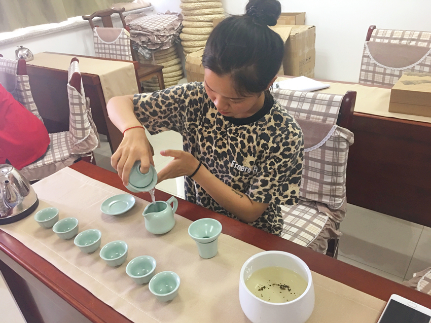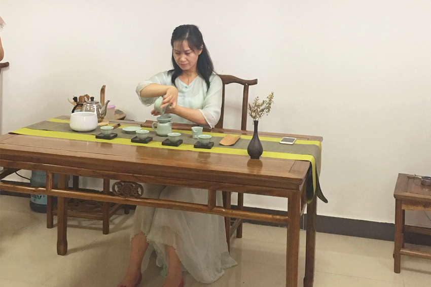 伴随着悠扬的古筝音乐,陈丽老师讲解了中国茶文化的悠久历史和安化黑茶的文化精神、功效,以及茶叶冲泡、鉴赏和保存的方法。她玉指轻拈、动作轻柔,现场示范了茶艺表演中的观茶、冲泡、敬茶、闻香、品茗等步骤。在老师的带领下,同学们逐一进行操作,通过泡茶、品茶享受着茶的芬芳与优雅,也更加了解中国深邃的茶文化,开阔了视野,提升了同学们的文化艺术修养。(撰稿:jinnianhui金年会诚信至上 张豫洋 审稿:吴亚飞)