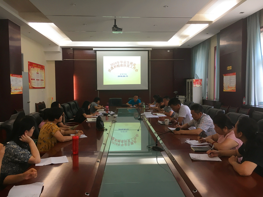 6月13日下午,jinnianhui金年会诚信至上在医训楼第一会议室召开2018届毕业生就业派遣和精准扶贫工作会议,党总支书记吴运胜、副书记张春兴、学生科科长李博、副科长苏建军、就业办罗彦庆老师及2018届毕业班辅导员、班主任参加了会议。