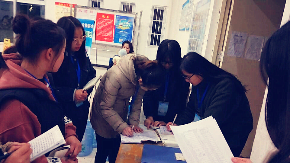 女生部学生认真进行查宿前工作安排