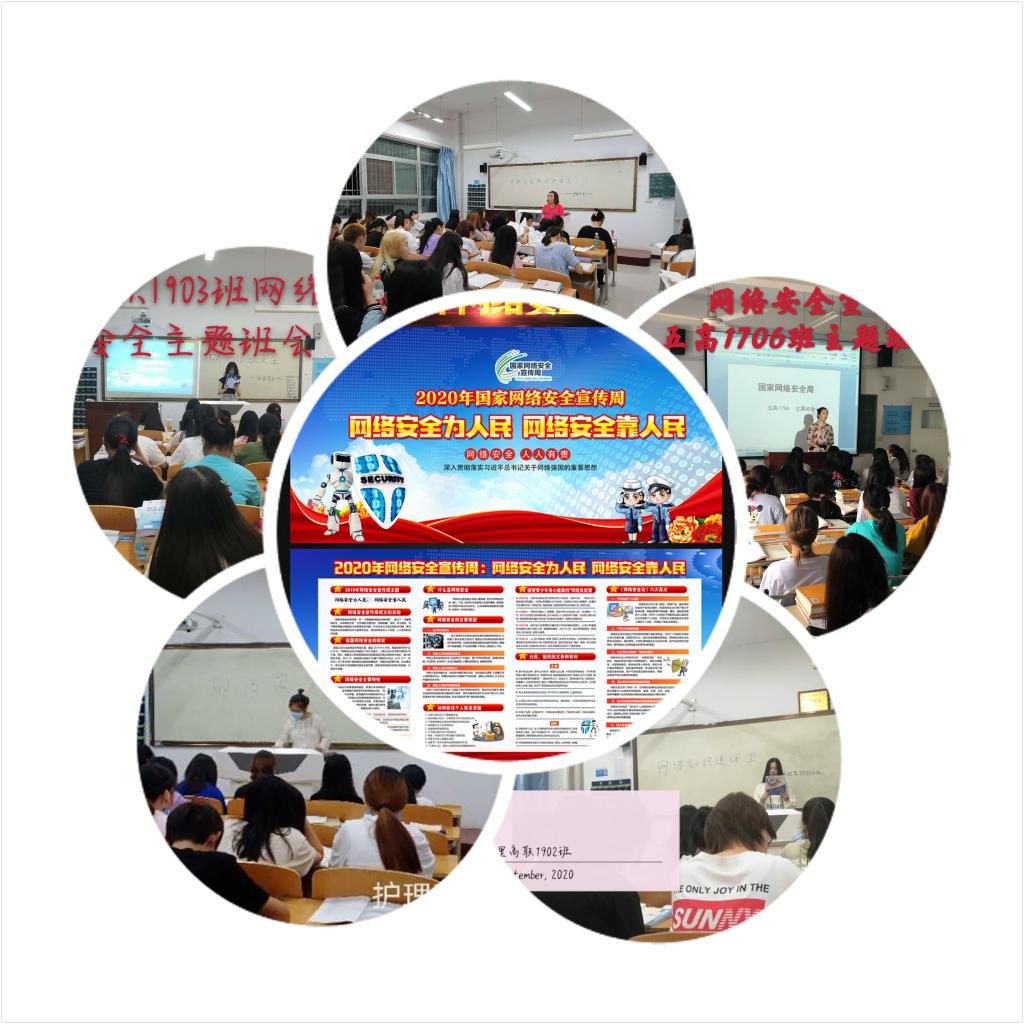 班会以“网络安全为人民 网络安全靠人民”为主题。护理高职1901班组织学生学习了《2020陕西省第七届国家网络安全宣传周宣传手册》,并结合生活中出现的信息泄露、木马病毒等网络安全问题展开了讨论,该班辅导员路雪宁提醒学生提高网络安全意识,用自身行动,净化用网环境,共同维护国家网络安全。护理五高1706班班主任白小萌与学生分析了近年出现的移动充电站、网红主播套路、密码安全等网络安全问题的原因,与学生讨论了正确应对网络安全问题的办法。她提醒学生少用或不用移动充电站,拒绝免密wifi,增加账号密码强度,保护自身用网安全。安莹、常钰曼等辅导员、班主任向班级学生介绍了国际网络安全形势,宣传了网络安全的重要性和防范网络安全陷阱的必要性,引导学生增强网络安全意识,提升基本防护技能,筑牢网络安全屏障。