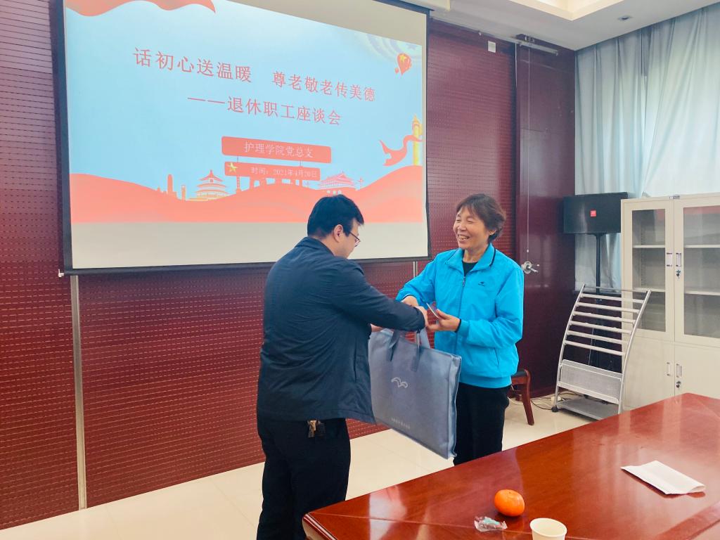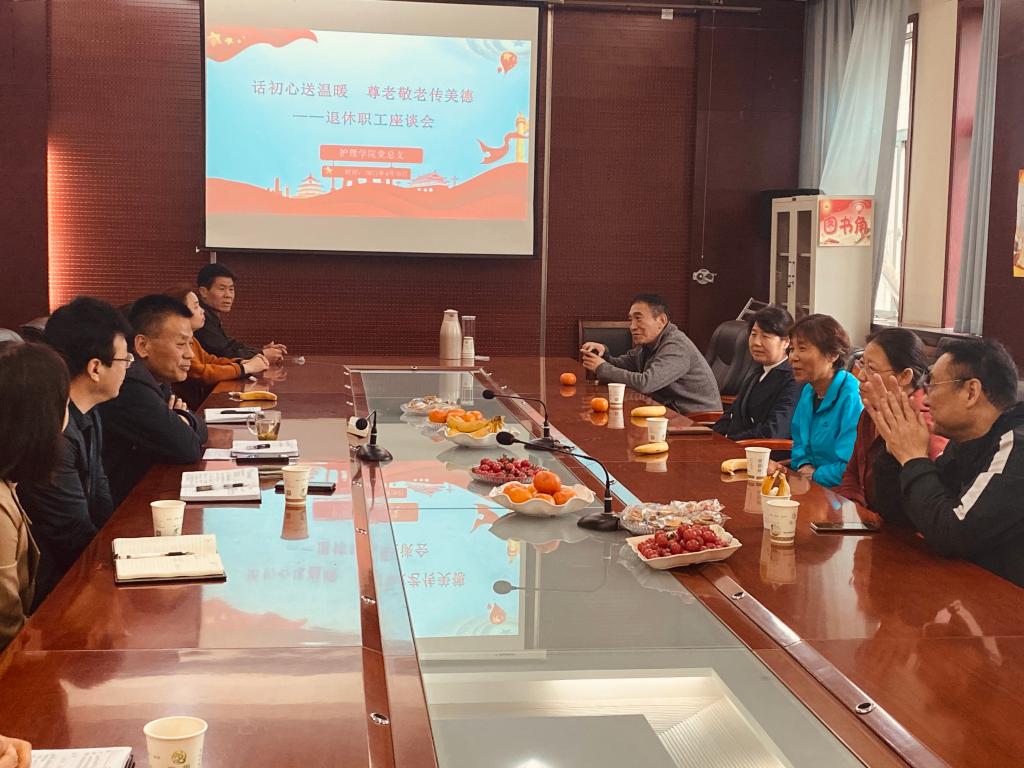 4月20日上午,jinnianhui金年会诚信至上在医训楼第一会议室召开了以“话初心送温暖,尊老敬老传美德”为主题的退休职工座谈会。我院党总支书记吴运胜、院长张成、副院长吴亚飞、任秋爱、副书记李晓乾以及教学科、学生科部分同志与年内退休职工参加。