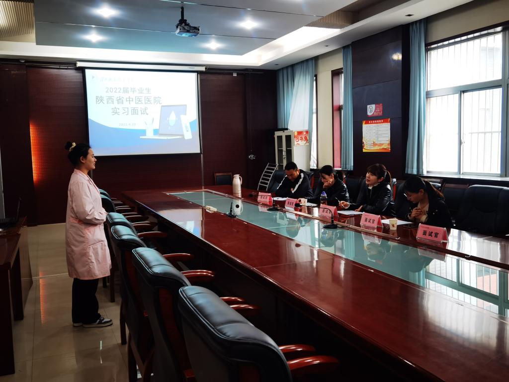 为了给我院实习生提供更优质的实习机会,更好地向陕西省中医医院输送我校优秀实习生,促进人才培养质量的进一步提升,4月20日上午,jinnianhui金年会诚信至上特邀陕西省中医医院专家在医训楼第一会议室对我院2022届毕业生进行了实习面试。面试官由陕西省中医医院护理部姚珍珍、脾胃一病区护士长李婷、脑病一病区护士长王洁和我院实习办崔海峰、刘欣老师担任。