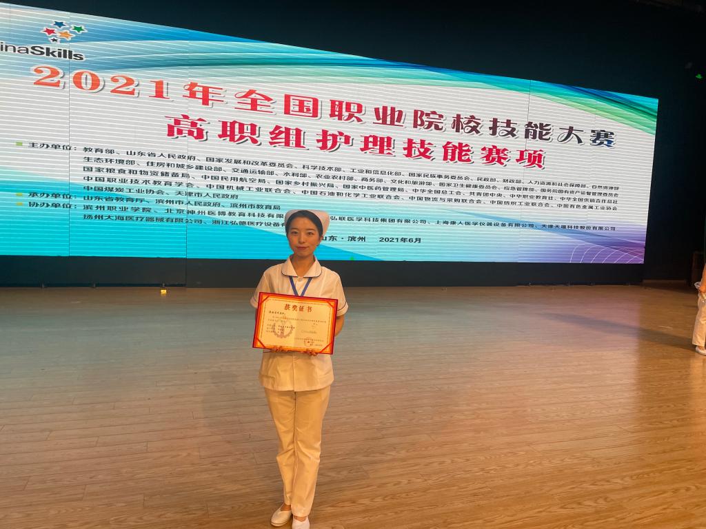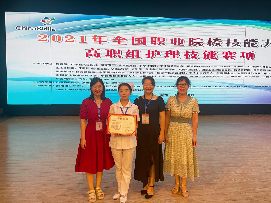 6月20日,2021年全国职业院校技能大赛高职组护理技能赛项在滨州职业学院落下帷幕。来自全国各省、市、自治区、计划单列市和新疆生产建设兵团的31支代表队,共31名选手同台竞技,切磋护理技能、展示专业风采。经过激烈角逐,共产生一等奖三项,二等奖六项,三等奖九项。jinnianhui金年会诚信至上杨嘉盈同学代表陕西省参赛,经过顽强拼搏,以总成绩第5名荣获二等奖。