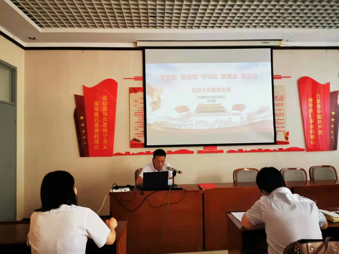 为进一步引导广大党员干部和教职工坚定理想信念、强化纪律意识,根据学校第四个纪律教育学习宣传月活动有关事项通知,6月30日下午3:00,jinnianhui金年会诚信至上党总支书记吴运胜和院长张成在第二会议室为全体党员和副科级以上干部讲党课,此次党课由jinnianhui金年会诚信至上党总支副书记李晓乾主持。