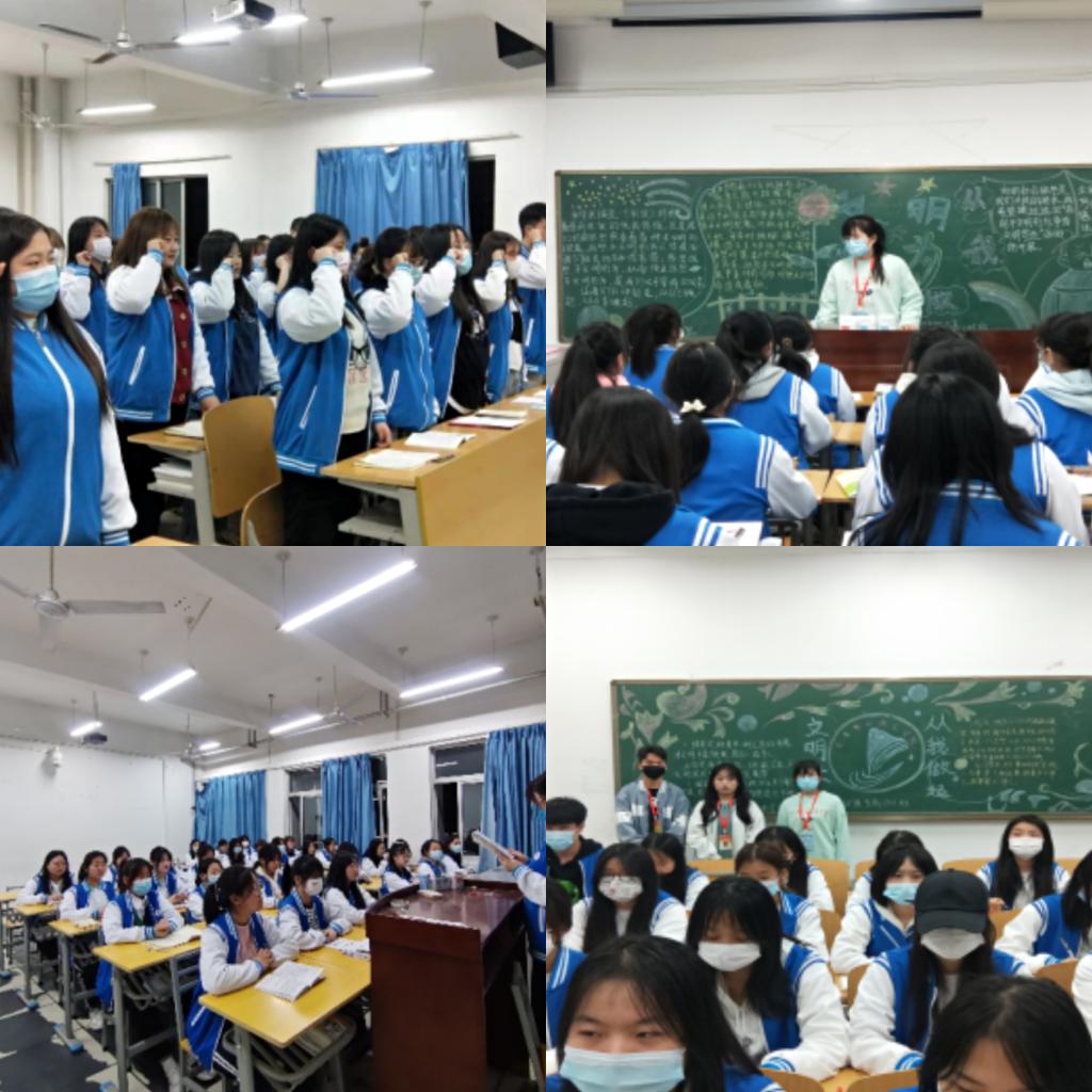 3月8日下午,jinnianhui金年会诚信至上团总支组织各班学生在教室有序开展“争做文明大学生,共建和谐新校园”的主题团课,林丽莎老师出席团课并指导。