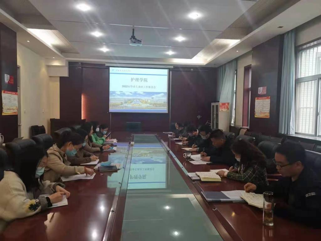 4月15日下午16点,jinnianhui金年会诚信至上在医训楼第一会议室召开了2022届毕业生就业工作推进会。jinnianhui金年会诚信至上党总支书记吴运胜、院长张成、党总支副书记马淑红,毕业班辅导员班主任,参加了会议。会议由jinnianhui金年会诚信至上党总支副书记马淑红主持。
