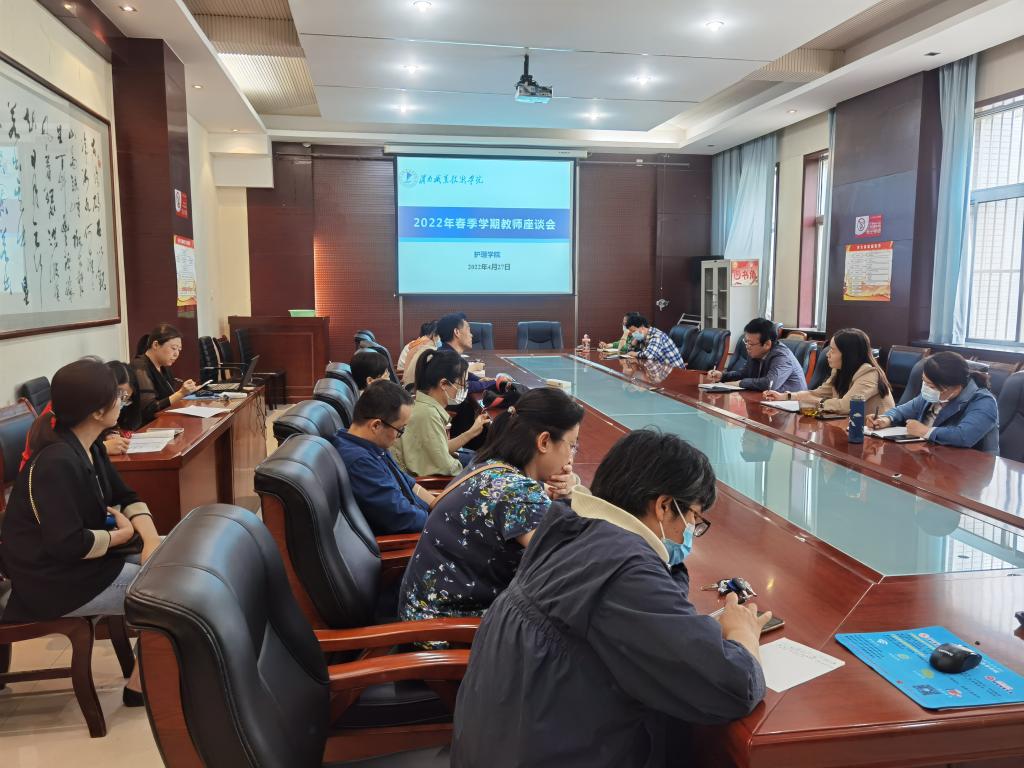 吴亚飞首先介绍了座谈会的主题,她希望与会教师能够围绕学院教学工作,针对存在的问题提出合理化意见和建议,共商教学组织改革和教学质量提升的措施。教师们从不同角度逐一发言为教学工作建言献策。外护教研室副主任郭宇森老师提出:希望预实习班级能提前一学期做好教学内容的调整;建议专业核心课程多采用案例教学,不断更新完善教学课件等资料。妇儿教研室主任杨小丽老师提出可将教研室日常工作安排纳入学院统一考核,以确保任务正常分配、高效完成。其他教师代表也针对课程思政、线上考试、实践考核、教材选择以及因疫情未返校学生教学和课堂手机管理等问题提出了建设性意见。在轻松活跃的会场氛围中,参会老师畅所欲言,涉及面广,核心问题讨论深刻,也达成了共识,提出的宝贵建议为解决了工作中的困惑提供了思路。