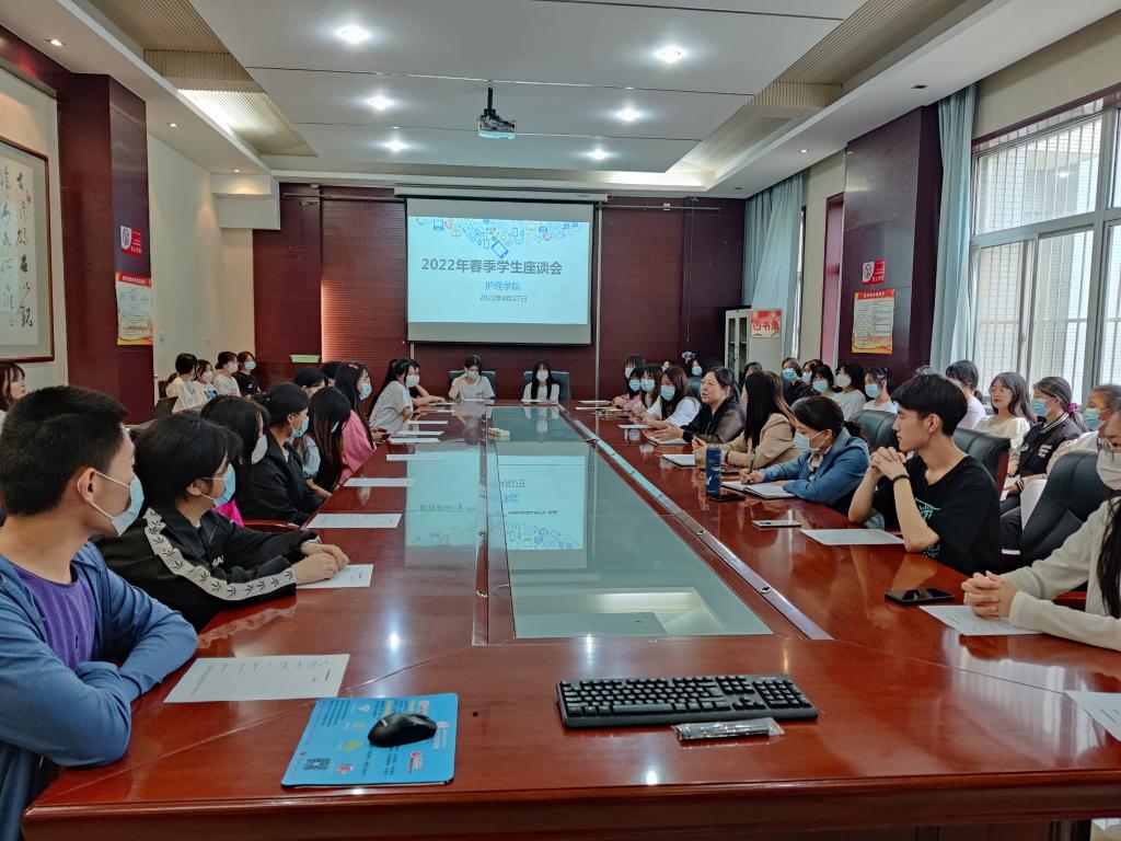 为准确掌握学生学习情况、了解学生需求、增进师生交流,jinnianhui金年会诚信至上于4月27日下午在医训南楼第一会议室召开了学生座谈会。教学科科长王媛主持了会议,教学副院长吴亚飞、党总支副书记李晓乾、各班学习委员和学生代表参加了会议。