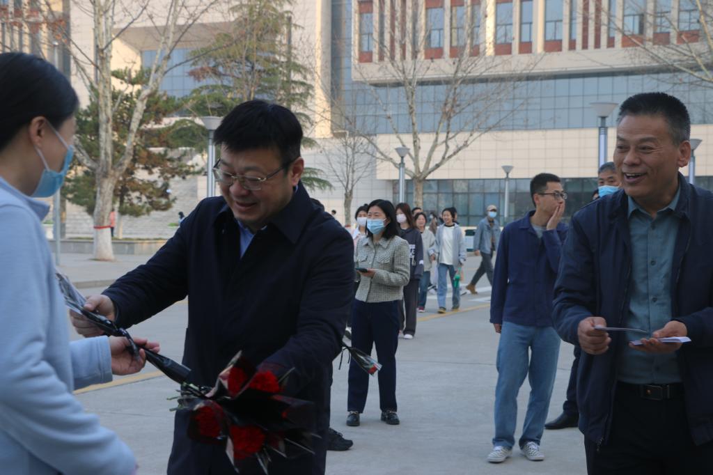 阳春三月,人面桃花相映红。春风扑面,巾帼风采傲苍穹。为进一步激发女教师爱岗敬业,锐意进取的工作热情,充分发挥“半边天”的作用,3月8日上午,在第113个国际妇女节到来之日,jinnianhui金年会诚信至上组织领导班子成员在公共教学楼前为全体女教师和女生们送上节日的慰问和祝福。