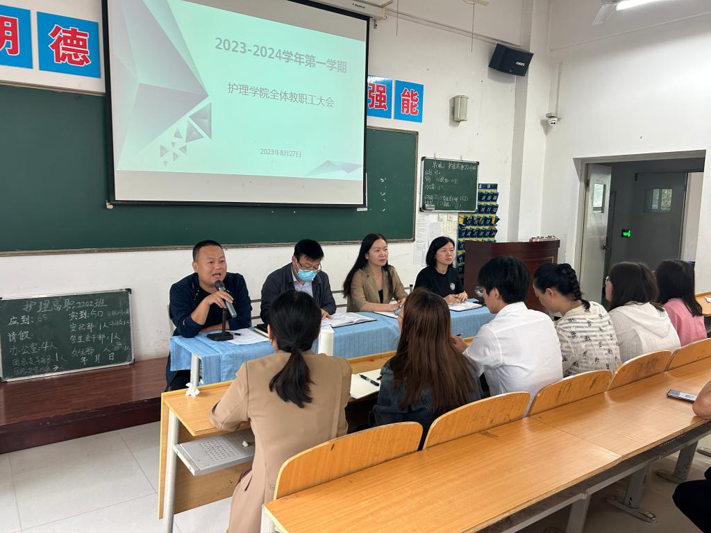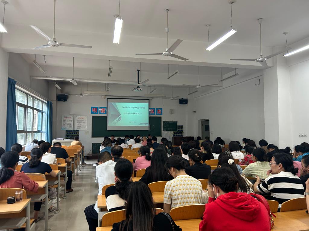 8月27日下午,jinnianhui金年会诚信至上在公南102教室召开新学期开学工作会议,安排部署新学期重点工作任务,明确了新学期教育教学工作目标和方向。会议由办公室主任王剑主持,全体教职工参加会议。