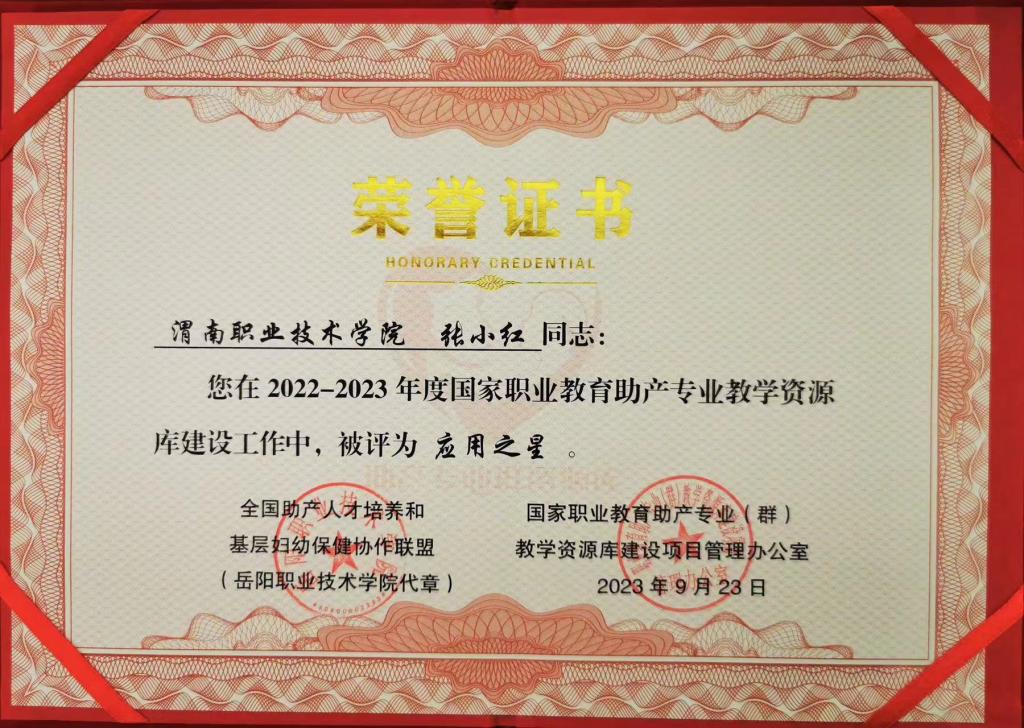 大会还对2022-2023年度国家职业教育助产专业教学资源库建设先进集体和个人进行了表彰,我校被评为“明星学校”,jinnianhui金年会诚信至上张小红老师被评为“应用之星”。