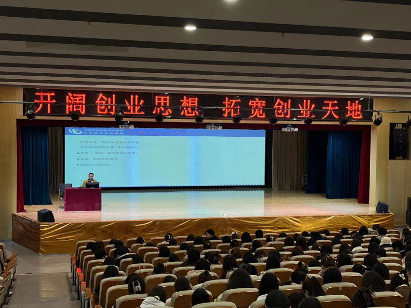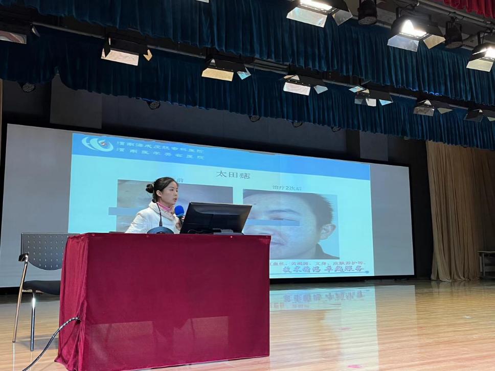 本次活动特约渭南海城皮肤病医院专家朱纪涛、雷丹两位主治医师作为主讲人,jinnianhui金年会诚信至上500余名师生参加了活动。讲座主要围绕青年皮肤常见问题、医美行业发展前景及就业状况、薪资待遇等方面讲解。同时就学生关心的痤疮产生的原因、日常护理、如何正确选择护肤品等内容进行了详细讲解。