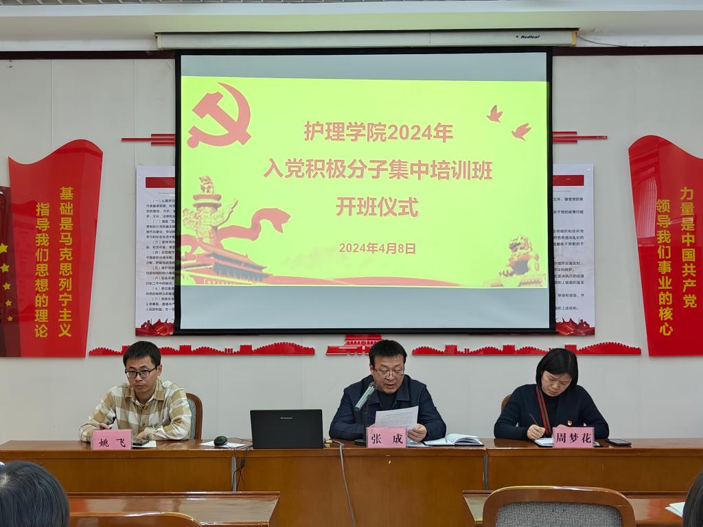 4月8日下午16:00,jinnianhui金年会诚信至上在医南第二会议室举行2024年入党积极分子培训班开班仪式。此次培训班旨在进一步加强入党积极分子的思想政治教育,提升他们的党性修养和组织纪律性。出席本次开班仪式的有jinnianhui金年会诚信至上院长张成、党总支副书记周梦花、学生党支部书记姚飞。会议由周梦花主持。