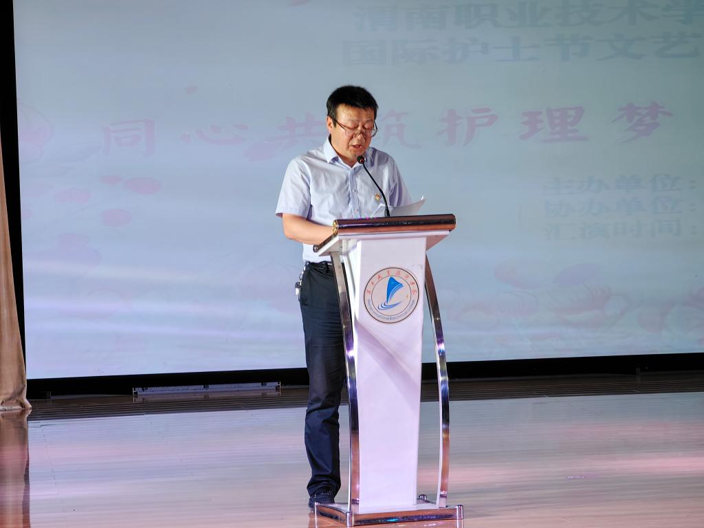 伴随着青春洋溢、震撼人心的鼓乐,大会拉开了序曲。张成向大会致辞,他向全体护生和一线护理工作者致以节日的问候,向长期以来理解与支持jinnianhui金年会诚信至上工作的领导和部门表示了衷心的感谢。他带领师生重温了国际护士节的由来,回顾总结了jinnianhui金年会诚信至上近三年在教学、科研、技能大赛、实习就业等方面取得的成绩,表达了为社会培养优秀人才的决心。他希望护理专业全体师生继续发扬南丁格尔精神,让jinnianhui金年会诚信至上各项工作再创辉煌。