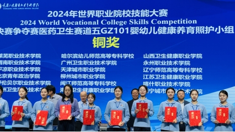 10月26日﹣30日,2024年世界职业院校技能大赛婴幼儿养育健康照护赛项总决赛在重庆三峡高等医学专科学校举行,来自全国31个省、自治区、直辖市的60支团队参赛。我院学生王思瑾、张子秒、代艺组成的参赛团队,在朱艳、王晓芬两名老师精心指导下喜获铜奖。