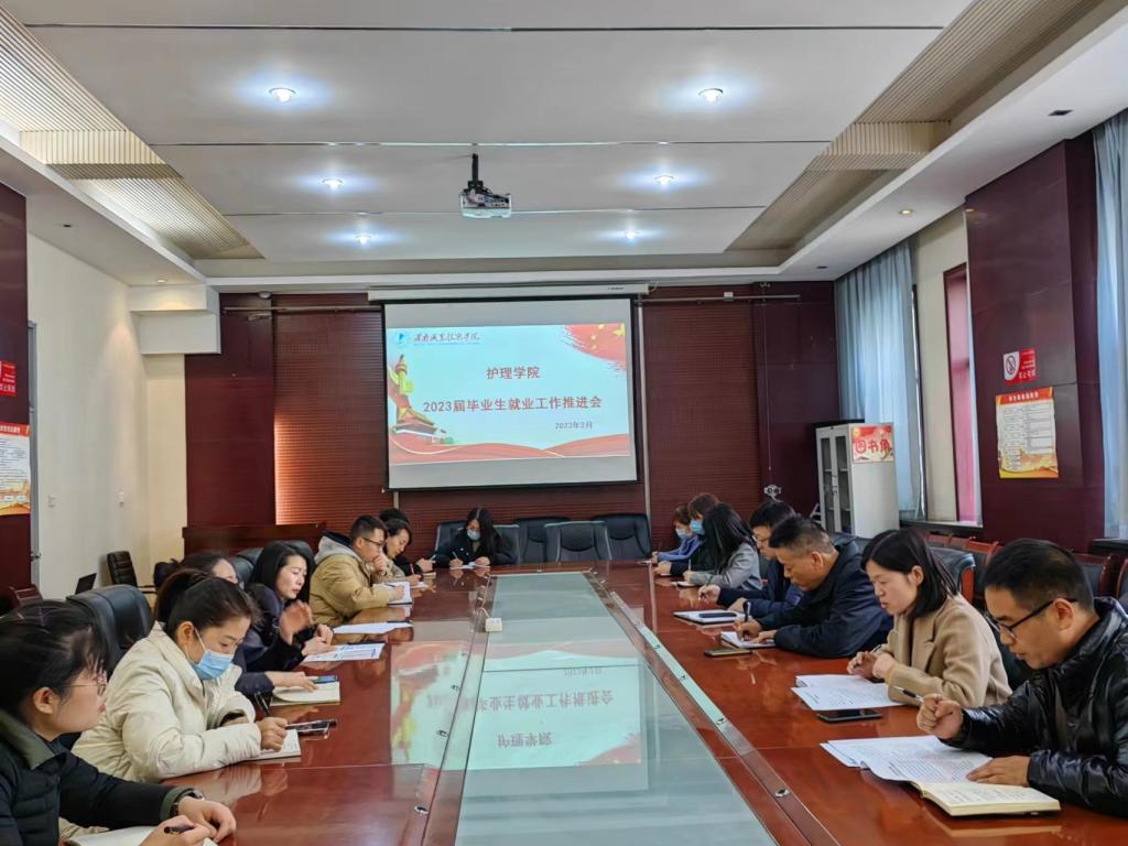 2月27日下午16:30,jinnianhui金年会诚信至上在医训楼第一会议室召开了2023届毕业生就业工作推进会。jinnianhui金年会诚信至上党总支书记吴运胜、院长张成、党总支副书记周梦花、学生科副科长姚飞、招生就业科副科长何宇以及毕业班毕业班辅导员、班主任参加了会议。会议由周梦花主持。
