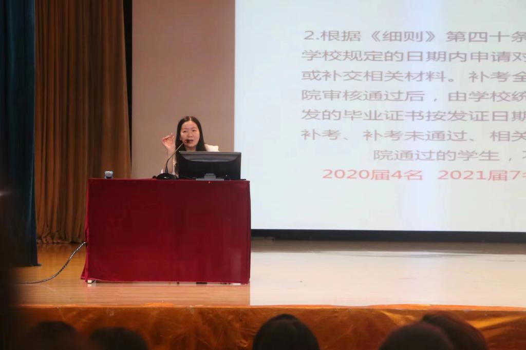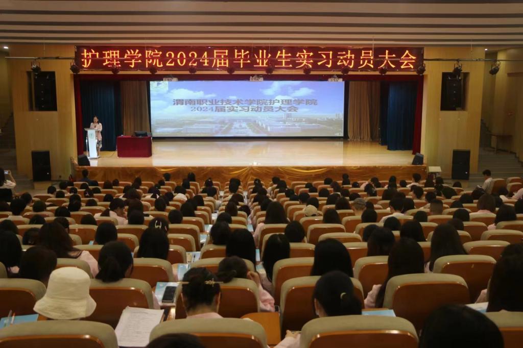 会议在jinnianhui金年会诚信至上全体参会师生奏唱国歌的庄严气氛中拉开帷幕。吴亚飞向同学们详细解读了《中华人民共和国职业教育法》《高等职业学校普通护理专业顶岗实习标准》《职业学校学生实习管理规定》中关于实习的相关规定,结合多起实习期间案例进行了分析,让学生从国家法律、规定层面认识到实习的重要性和严肃性。刘欣为学生讲解了实习流程和实习考核手册的填写要求,姚飞向同学们强调了实习期间租房、财产、人身安全等内容,何宇带领大家一起学习了当前就业形势,号召大家珍惜实习生活,依靠自己的努力为将来就业打好坚实基础。张成做实习总动员,希望同学们严格遵守实习管理规定,将实习安全放在首位,脚踏实地完成实习任务,预祝同学们诸事顺利,未来可期。