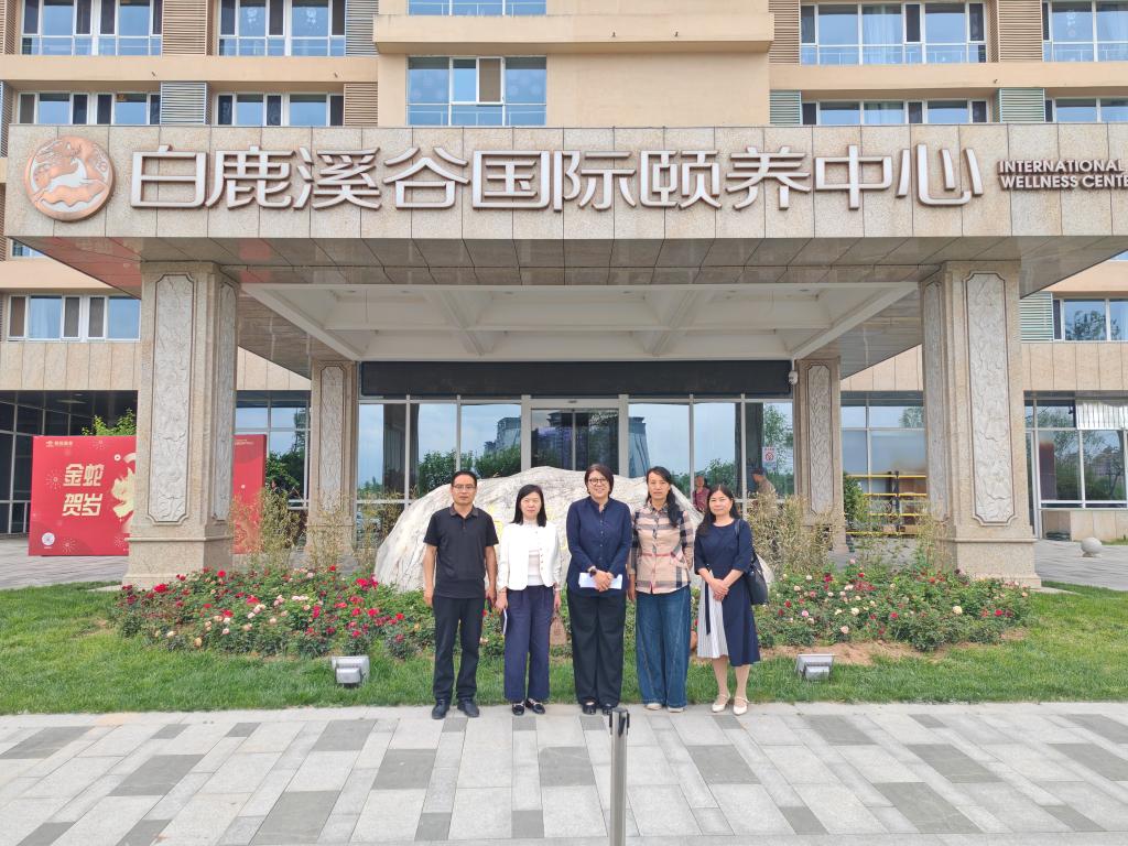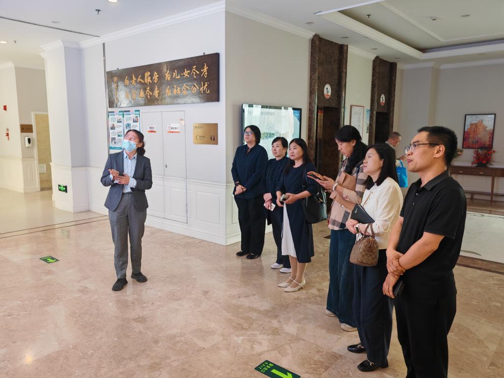 在白鹿溪谷国际颐养中心护理部主任赵馨媛、医务科主任强月娥的陪同下,参观了长者生活区、康复活动区、营养膳食区、陕投康养智慧养老数据中心、特色助浴区等功能区域。