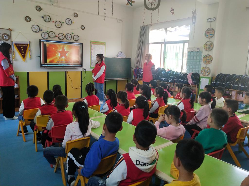 4月29日,jinnianhui金年会诚信至上团总支青年志愿者服务队10名志愿者赴博文幼儿园开展了以“童心向党,红色传承”为主题的志愿服务活动。