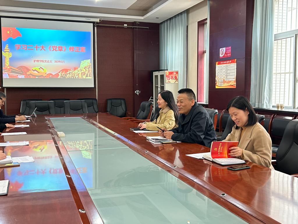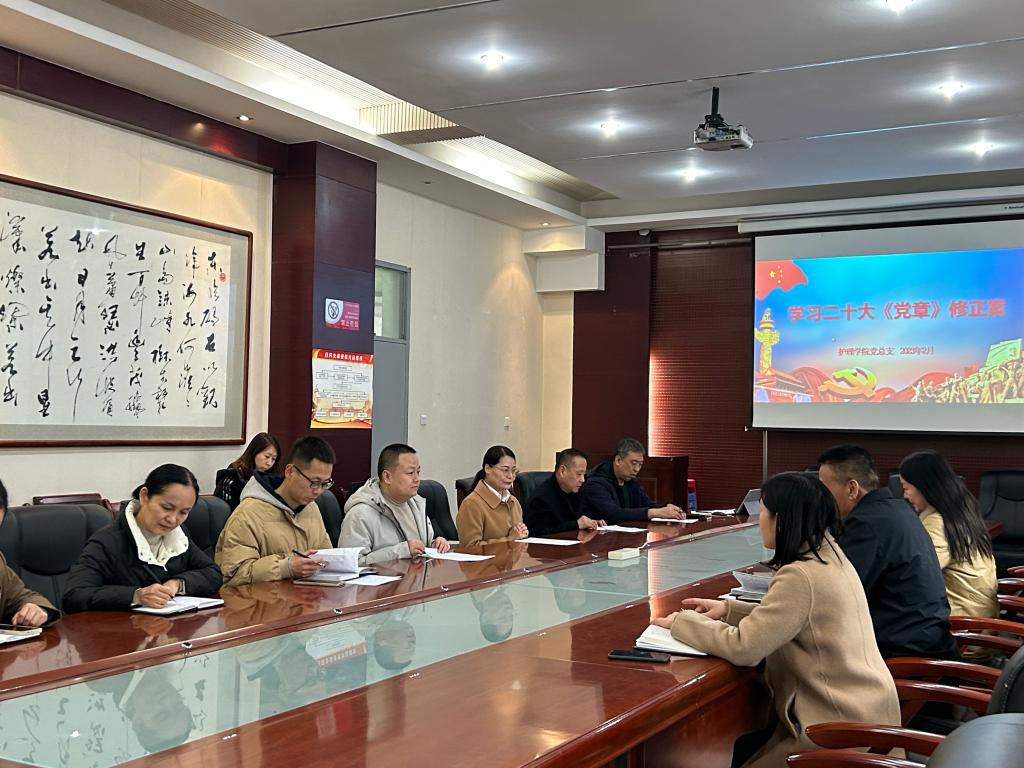 会前,jinnianhui金年会诚信至上党总支副书记周梦花带领大家学习了二十大党章修正案。