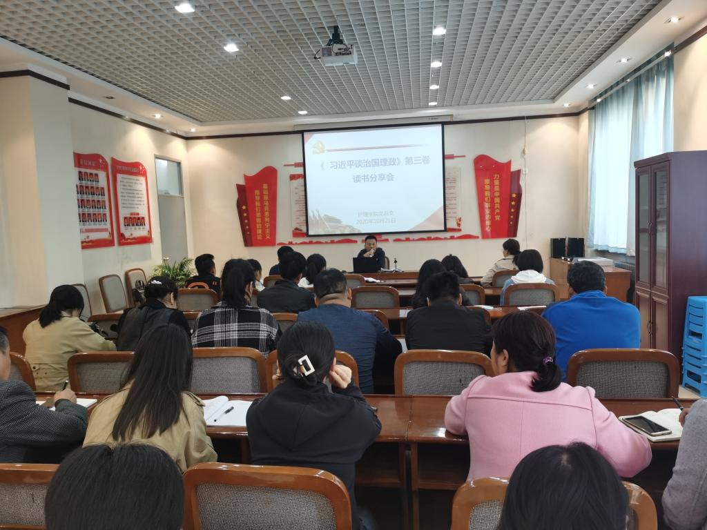 根据校党委安排,10月21日下午,jinnianhui金年会诚信至上党总支在医训楼南楼第二会议室召开了《习近平谈治国理政》第三卷读书分享会,我院全体党员同志参加了分享会。分享会由党总支副书记李晓乾主持。