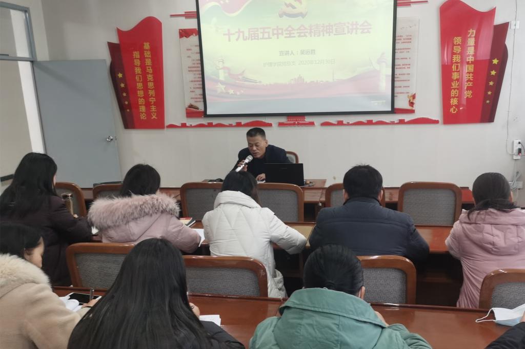 12月30日下午,jinnianhui金年会诚信至上党总支组织全体党员干部、20余名入党积极分子及教师代表在医训楼南楼第二会议室召开了学习贯彻党的十九届五中全会精神宣讲会,我院党总支书记吴运胜担任主讲,党总支副书记李晓乾主持了宣讲会。