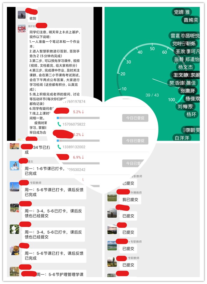 在我院教学科的精心组织下,经过一周紧张有序扎实准备,jinnianhui金年会诚信至上各任课教师有效整合课程资源,结合各课程特点,分别通过智慧树、智慧职教、云班课等多个数据平台创建课程。教学科通过教学日志打卡和教学情况反馈两个环节实施了教学质量监控。