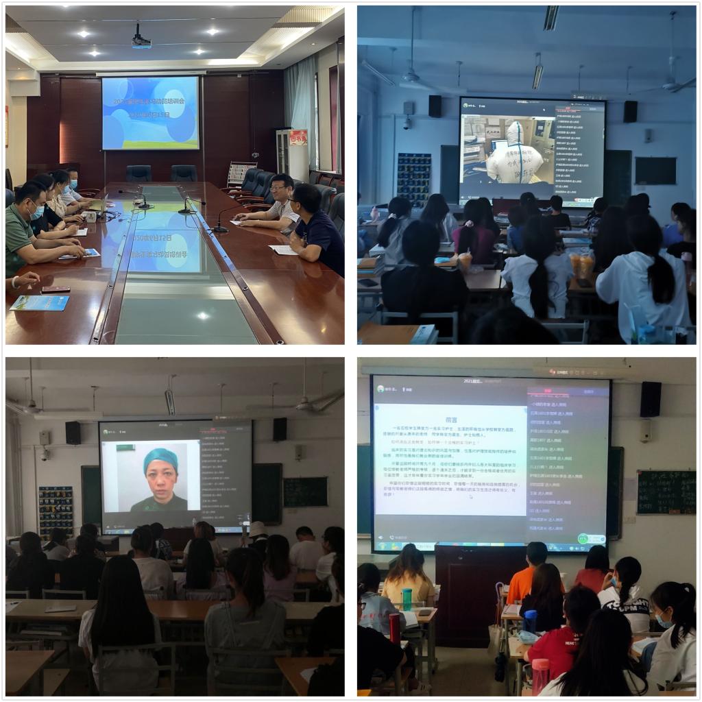 会上,吴亚飞用我校校友们在新冠肺炎救治一线的感人事迹为学生做导向,让学生以李兰娟奶奶和钟南山爷爷的工作作风为楷模,向“生于非典 考于新冠”但依然奋战在备考一线的学弟学妹们学习,全力以赴做好收关学年的实习工作。她强调了实习学年的最终考核指标,希望实习生端正实习态度,做好知识上的储备,学会与带教老师和患者的沟通,积极学习,注意积累;严格遵守学校和实习医院有关规章制度,向优秀实习护士的标准靠拢,争做优秀实习生;在新冠肺炎救治的岗位要注意更加严格地规范操作,注意防护;要践行救死扶伤的南丁格尔誓言,讲大局,讲奉献,配合医院打赢疫情阻击战。