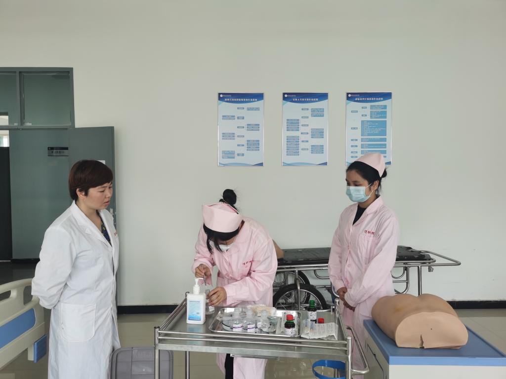 考试期间,jinnianhui金年会诚信至上党总支书记吴运胜、院长张成、副院长吴亚飞和教学科长王媛等对考试情况进行了巡视和检查,领导们一致认为本次考试学生思想重视、监考老师执考严格,起到了督促和检验学生专业技能的良好作用。吴运胜和张成在观看完一位学生的考核过程后饶有兴致地进行了点评并给予学生最中肯的建议和充分肯定。执考老师杨文娟在学生完成肌肉注射考核后及时指出了学生存在的问题并现场演示了排气、消毒和注射定位的方法,使学生通过考试发现短板、弥补不足,对实习工作树立了信心。