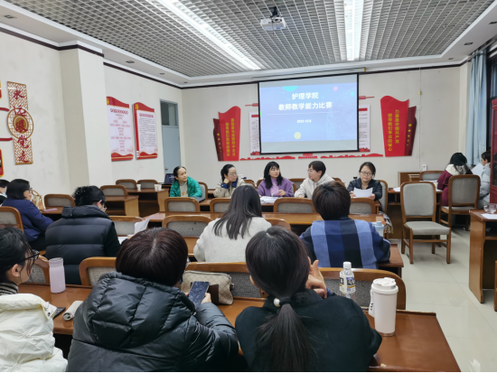 为推进“三教”改革,打造高水平结构化教师教学创新团队,充分发挥比赛的引领示范作用,jinnianhui金年会诚信至上于2023年12月6日下午在医训楼第二会议室举行了2023年校级教师教学能力比赛选拔赛。比赛邀请了师范学院于晶汝、惠建妮,建筑工程学院黄天奕,医学院袁淑仪,jinnianhui金年会诚信至上孙会娟等往届教学能力比赛参赛团队负责人担任评委,比赛由jinnianhui金年会诚信至上教学科科长孙会娟主持,无课教师代表观摩了比赛。