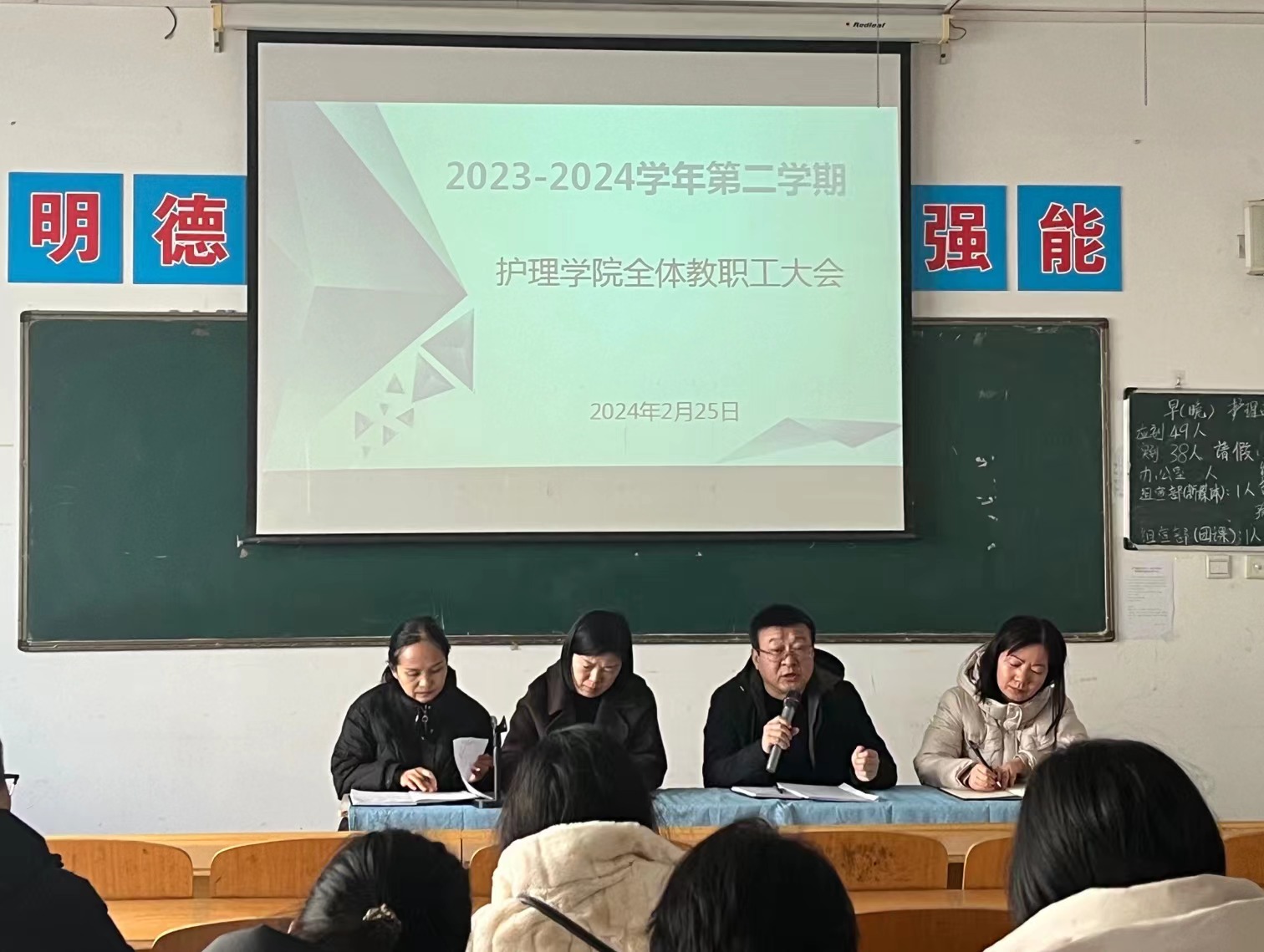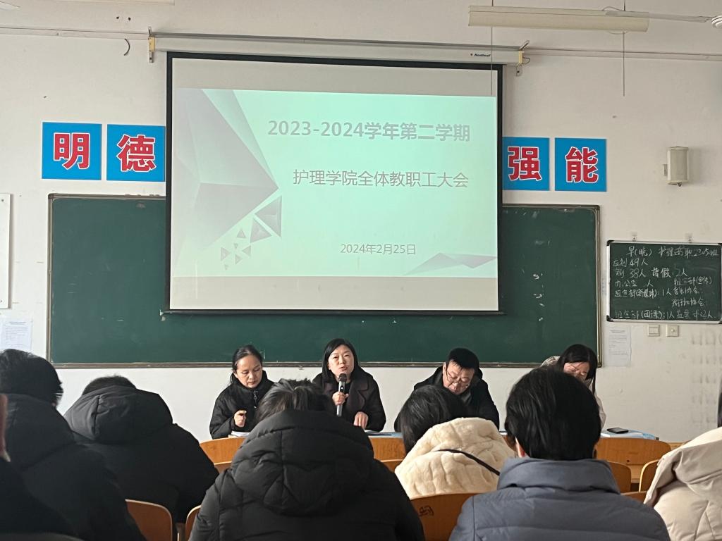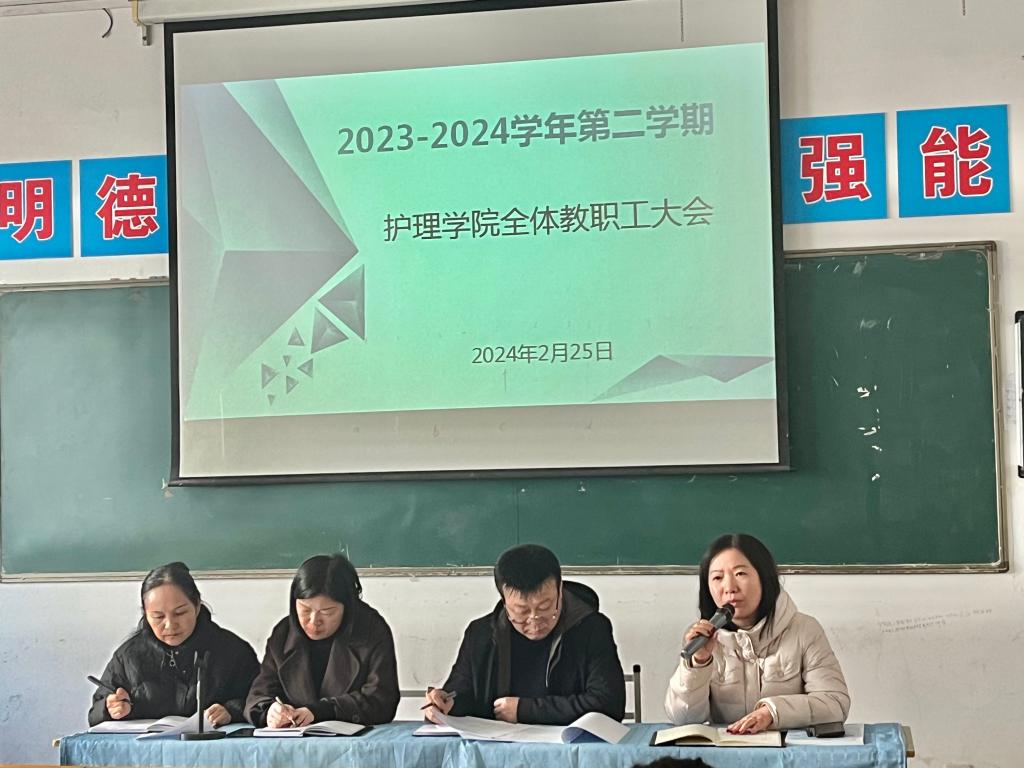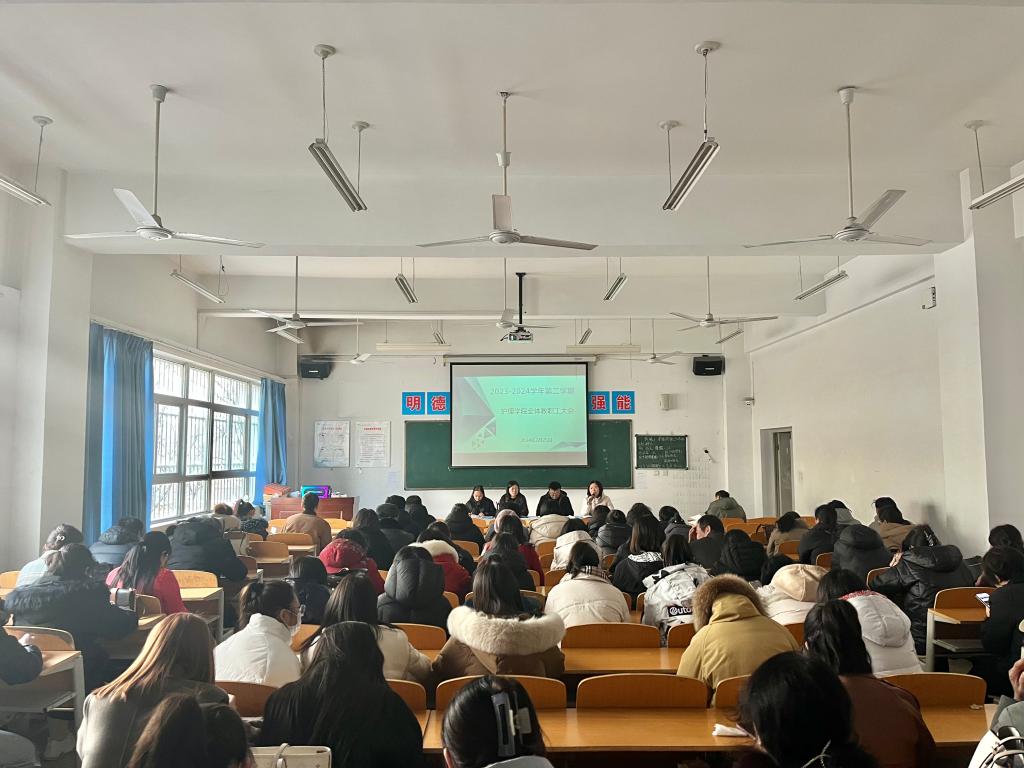 为确保开学之后的各项工作平稳有序开展,2月25日上午,jinnianhui金年会诚信至上院长张成、副院长吴亚飞,党总支副书记周梦花、招生就业科科长何宇及全体教职工齐聚公共教学楼南楼102教室,召开2024年春季开学教职工大会。会议由jinnianhui金年会诚信至上副院长任秋爱主持。