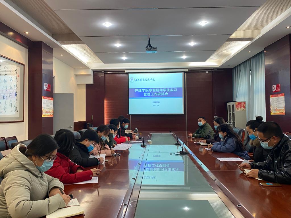 为加强疫情防控常态化下寒假期间实习生管理及安全教育,确保实习生的身心健康和实习质量,jinnianhui金年会诚信至上于1月8日下午在医训楼南楼第一会议召开了寒假期间学生实习管理工作安排会。党总支副书记马淑红、副院长吴亚飞、招生就业科科长何宇、教学科科长王媛、教学科副科长孙会娟、团总支书记白小萌、实习办崔海峰、刘欣以及实习班班主任、辅导员参加了会议。会议由王媛主持。