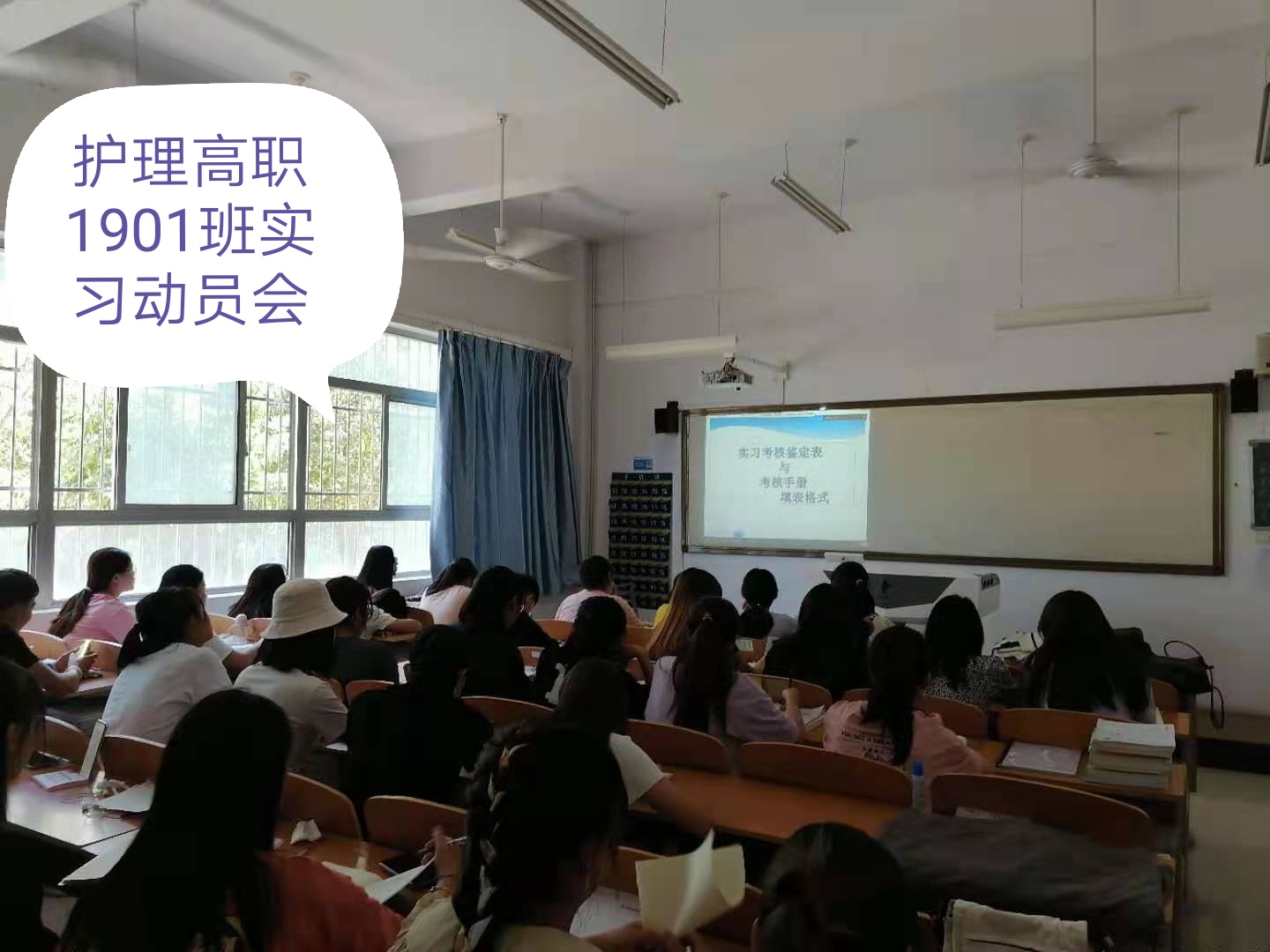 张成进行了实习总动员。他对学生提出了五点要求:一是做好充分的思想准备;二是尽快完成角色转换;三是在实践中成长;四是时刻注意实习安全;五是重视专升本和护士执业资格考试两个考试。他希望同学们牢记使命、虚心学习,以饱满的热情投入到实习中,为学院增光、为自己添彩。