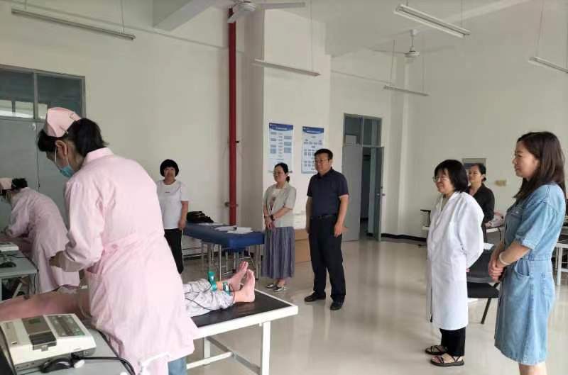 考核过程中院长张成带领jinnianhui金年会诚信至上领导班子进行了巡视督导,对考务工作安排和考场秩序给予了高度肯定,他希望考生能通过实践考核进一步熟练临床护理操作技能,并把所学知识技能充分运用到临床实际工作中。学生们仪表端庄、高度重视,操作准确规范,动作流畅娴熟,监考老师考核评分之余对学生在考核中存在的问题予以纠正,达到了以考促学、考学相长的效果。