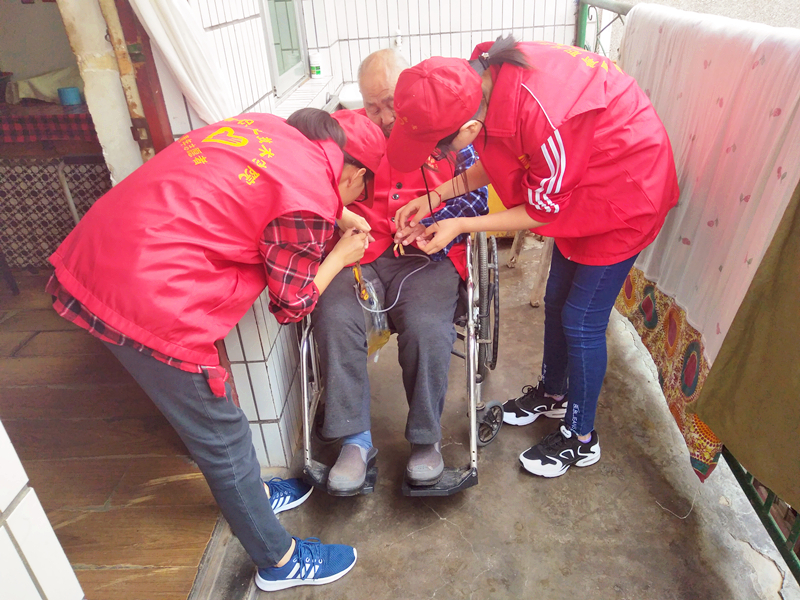 志愿者帮助老人整理个人卫生
