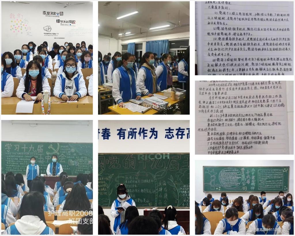 各班同学分享了对“党的十九届五中全会精神”的学习心得。护理高职1906班李悦说:“十九届五中全会给新时代我国社会主义发展把好了方向,定好了目标,绘制了蓝图,我们大学生要坚定政治立场,听党话,跟党走,做新时代敢担当、有作为的有志建设者。”护理高职1902班张雯环认为:“十九届五中全会给中国现阶段发展作了定位,我们应该充分认识五中全会的重要意义,坚持党的理论学习和专业知识学习,努力精强护理实践操作能力,不忘医学生减轻病患痛苦的初心,勇担护生救死扶伤之责,为祖国医护事业贡献力量。”(撰稿:jinnianhui金年会诚信至上 王蓉 审核:李晓乾)