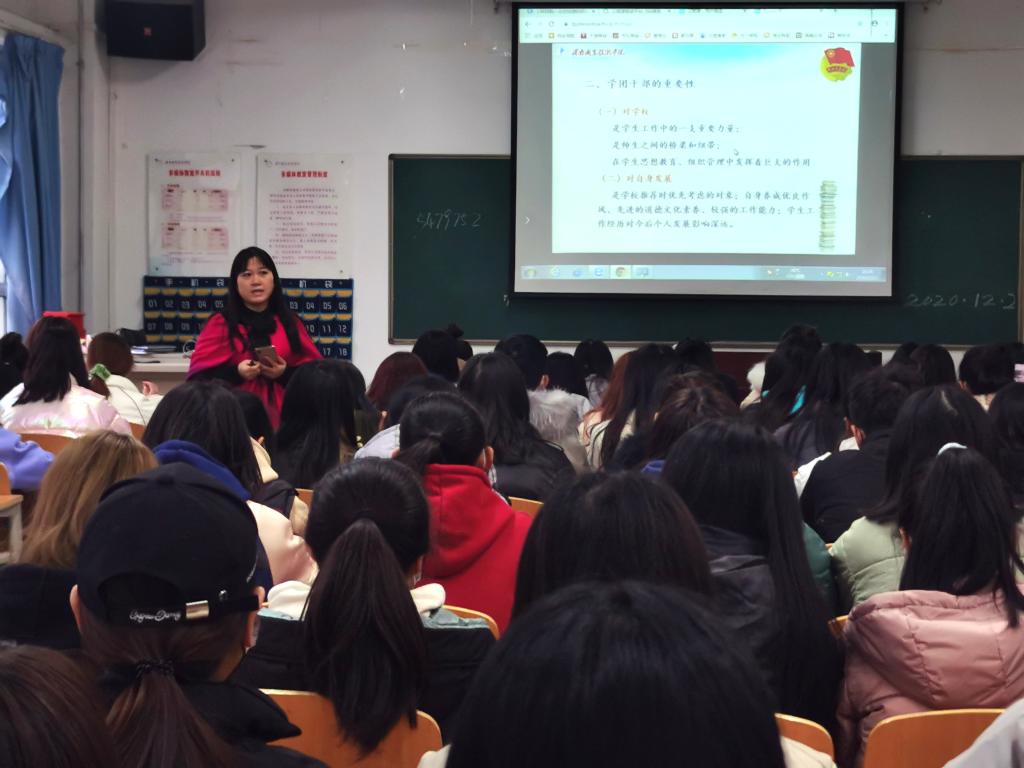 为进一步规范学生管理工作,提升学生干部工作水平,12月2日下午,jinnianhui金年会诚信至上在公共教学楼南楼105室开展了“学团干部培训大会”。我院党总支副书记马淑红,团总支书记白小萌,学生管理科科长李博,辅导员李潮,学生会、总支各部门负责人及70余名学生代表参加了大会。大会由团总支书记白小萌主持。