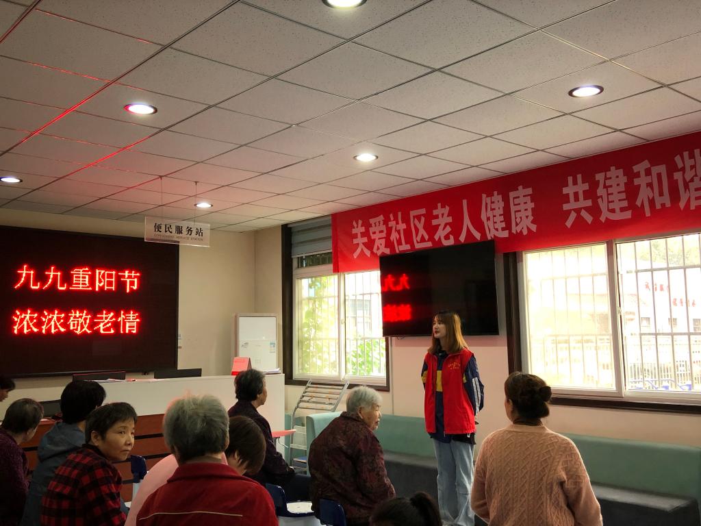 10月14日上午,志愿者服务队到达敬老院。敬老院院长向老人们说明了这次活动的主要内容,并向志愿者们强调了护理老人的注意事项。在工作人员的带领下志愿者们一起进入到老人的公寓,为老人营造了一个身心愉悦的生活环境,有志愿者给老人捶背,也有志愿者运用所学专业技能为老人按摩、慰问老人等等活动,给予老人身体与精神上的关爱。最后志愿者们进行了才艺表演,让老人感受到“家人”的温暖。本次活动增强了学生的沟通能力,拉近与亲人的关系,有利于形成良好社会风尚。