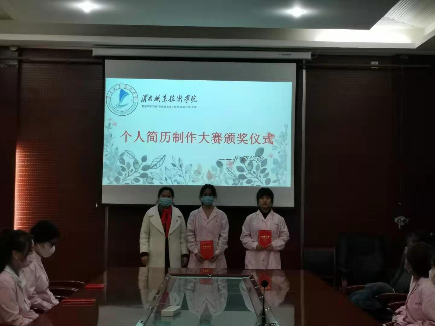 最后,何宇从当前高职院校就业形势、就业渠道以及简历制作的重要性出发,鼓励学生积极参与就业创业相关活动,认真学习护理专业技术技能,做好自身职业规划,为步入社会,成为一名优秀的医护工作者做好准备。马淑红对本次活动作了总结讲话,表达了对获奖学生的祝贺以及简历设计的肯定,她将简历生动地比喻为人生的起航线和伴随学生一生的伴侣,并表达了自己对于简历制作的几点建议:一是简历的内容要做到简洁;二是简历中要杜绝低级的错误,比如出现错别字情况等;三是简历的个人介绍要惜墨如金,用凝练的语言恰到好处地展示出个人的优势与技能;四是要尽量做到文如其人,即内容与形式的有机统一。她期望同学在未来的职场上都能找到适合自己的工作,有一个美好的前程。