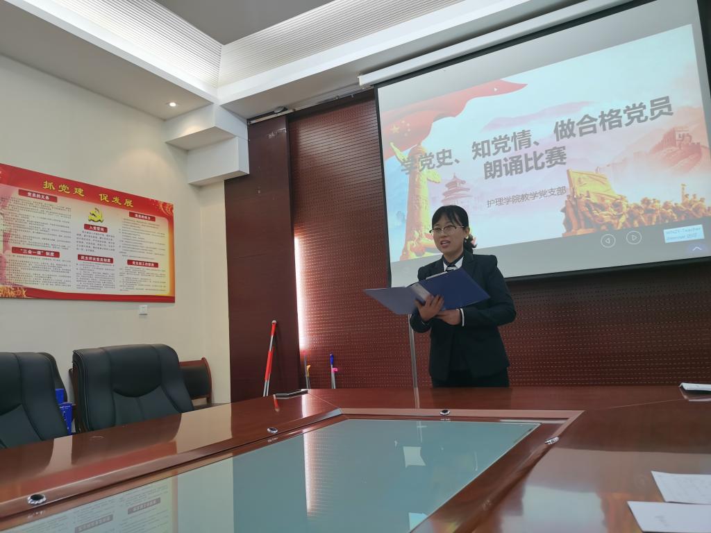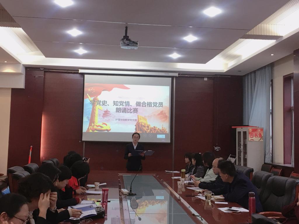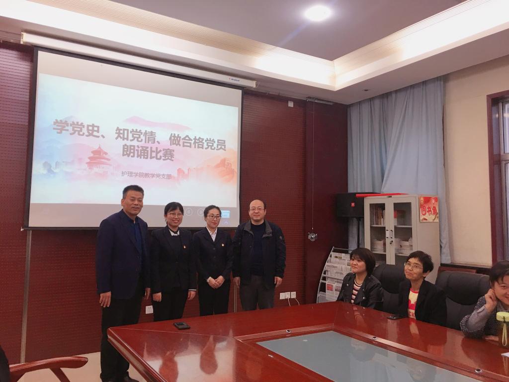 10月30日下午,为了庆祝中国共产党成立98周年,重温党的光辉历程,弘扬党的优良传统,坚定理想信念,jinnianhui金年会诚信至上教学党支部在医训南楼第一会议室举行了“学党史知党情 做合格党员”朗诵比赛。我院党总支书记吴运胜、院长张成、副院长吴亚飞、副书记马淑红出席朗诵会并担任评委,共十二名党员参加了朗诵比赛。
