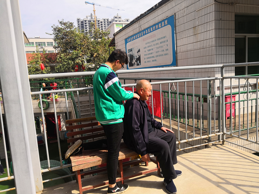 志愿者陪老人返回生活区